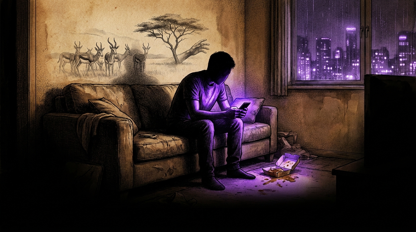 你没有病。你的人格没有缺陷。你的意志力没有比别人更弱。你只是带着一个极其精密、在非洲大草原上身经百战的“顶级生存大脑”,突然被扔进了一个充满了资本算法、超常刺激和异化社交的“神经递质屠宰场”。